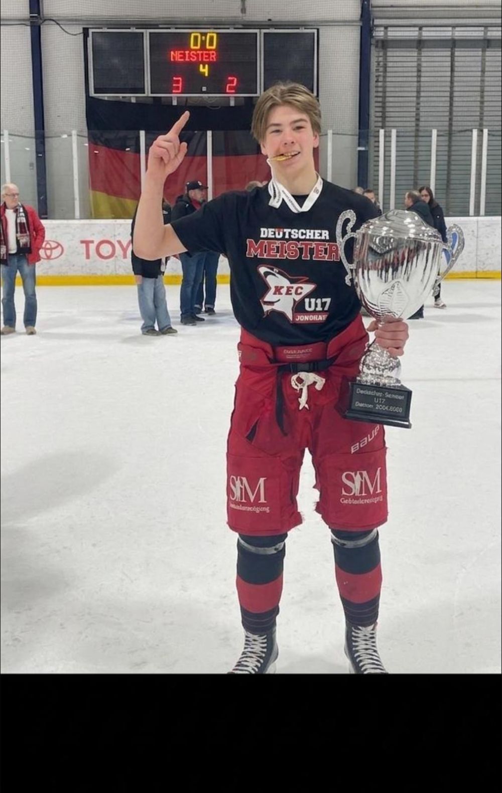 Tommaso Schrick aus der Q1 ist Deutscher Meister! Gemeinsam mit seiner U17-Mannschaft der Kölner Haie sicherte er sich am Ostersonntag nach einer spannenden Best-of-Five-Serie gegen die Adler Mannheim den Titel. Die Finalserie entwickelte sich über vier nervenaufreibende Spiele und endete mit dem verdienten Triumph für Köln.Besonders bemerkenswert: Für die Kölner Haie ist es der erste Meistertitel in dieser Altersklasse seit elf Jahren. Wir gratulieren Tommaso herzlich zu diesem großartigen Erfolg!“