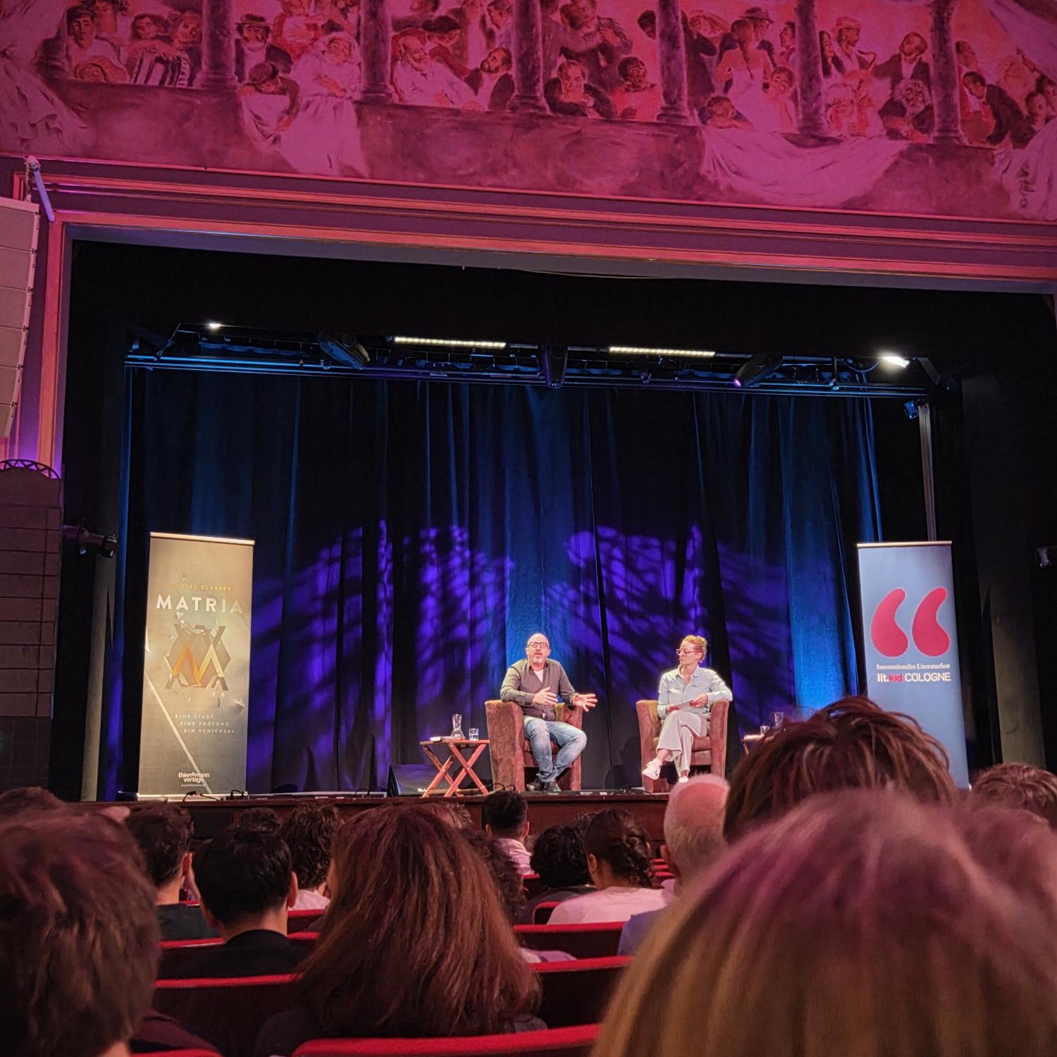 Die 9a war außerdem am 11.03. auf der Lit.Cologne bei der Veranstaltung zum Roman „Matria“ von Tobias Elsäßer. In diesem Roman geht es um ein spannendes Gedankenspiel: Elias wächst in der Matria auf, einer scheinbar perfekten Gesellschaft, in der Frauen nach Jahren der Gewalt ein neues, sicheres Leben führen – und Jungen unter ständiger Beobachtung stehen. Mit der Pubertät beginnt für Elias ein innerer Kampf zwischen den Erwartungen der Gemeinschaft und seinen eigenen Gefühlen…. Ein packender Coming-of-Age-Roman über Identität und um die Frage, wie viel Kontrolle eine Gesellschaft braucht, um wirklich sicher zu sein. Und natürlich vor allem um die wichtige Frage, wie Machtverhältnisse innerhalb der Gesellschaft zwischen Männern und Frauen verteilt sein sollten und wie wir dem Erstarken patriarchaler Strukturen am besten begegnen können.